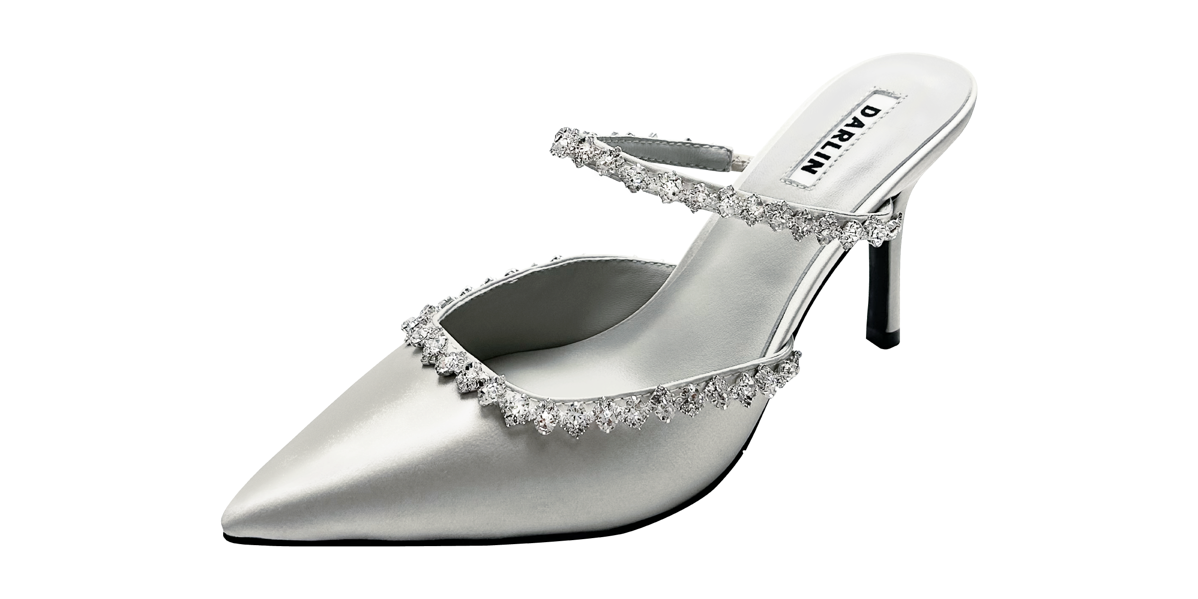 ดีไซน์หัวแหลมช่วยให้เท้าดูเรียว เสริมเสน่ห์ด้วยดีเทลเส้นเพชรระยิบระยับบริเวณหน้าเท้า และสายคาดช่วยคอมพลีทลุค และเพิ่มมิติให้รองเท้าดูโดดเด่นขึ้น
