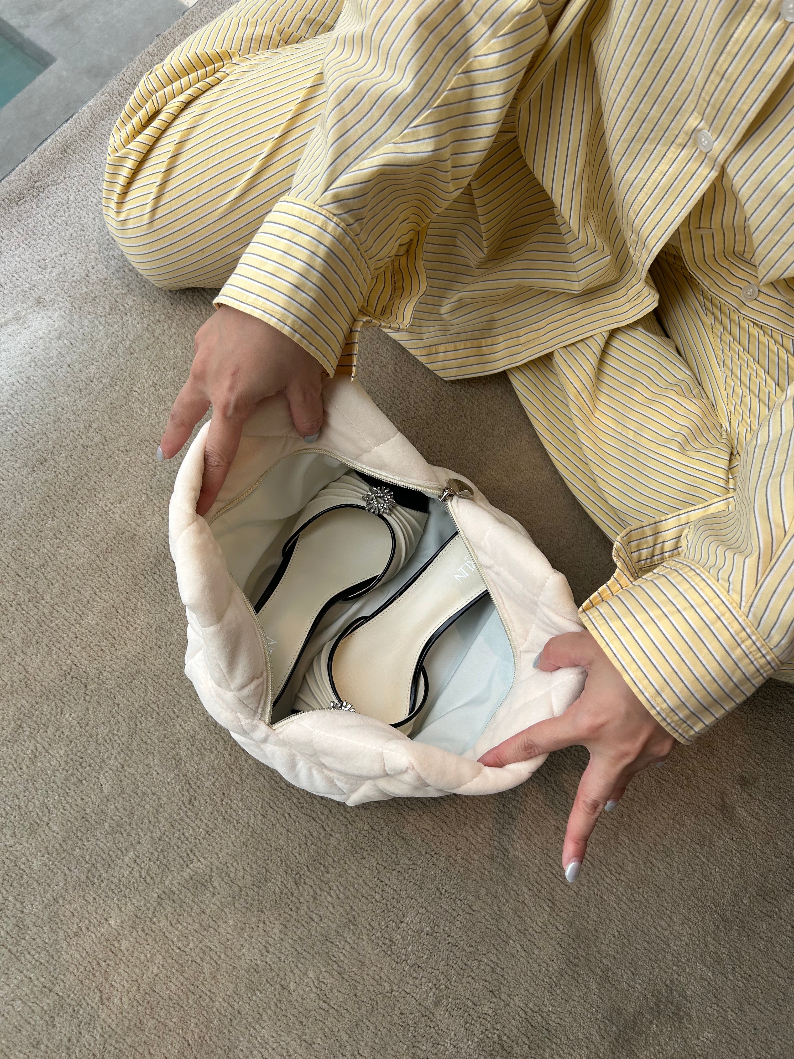 กระเป๋าเครื่องสำอางสีขาวนุ่มฟู สุดคิ้วท์!