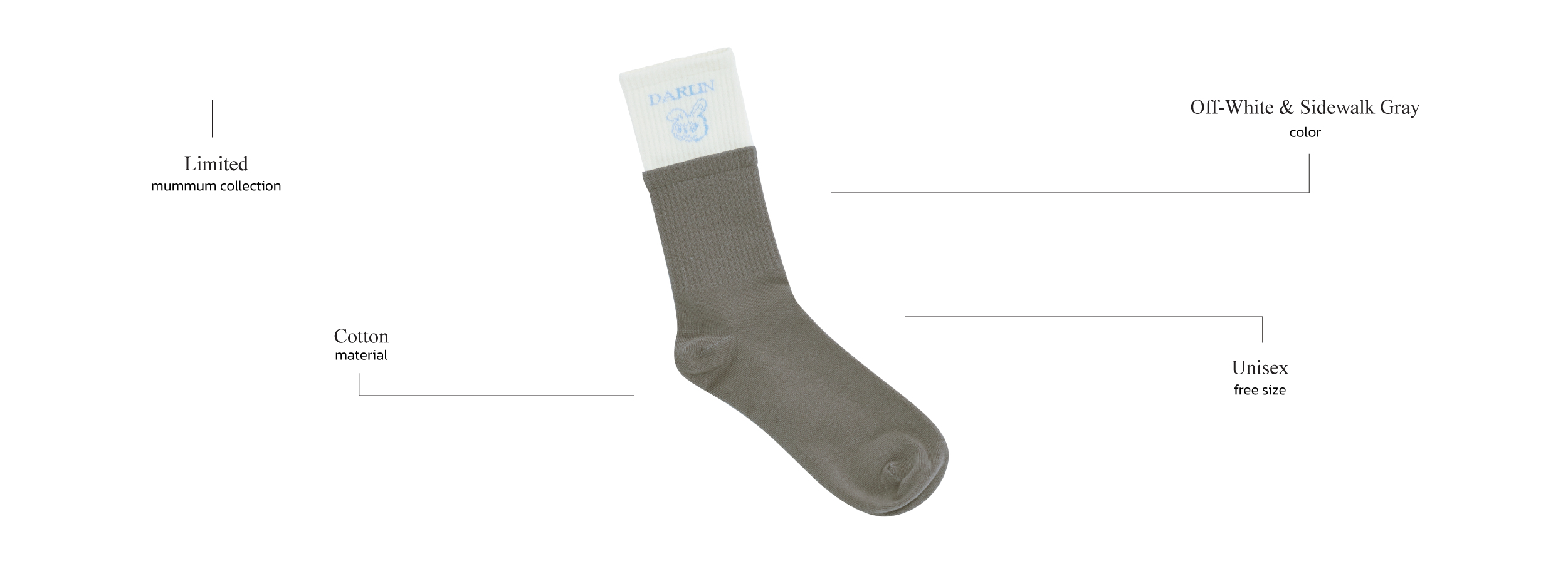 ถุงเท้าสีเทานุ่มนิ่ม สุดน่ารัก ลายน้อง mummum ขี้เล่น