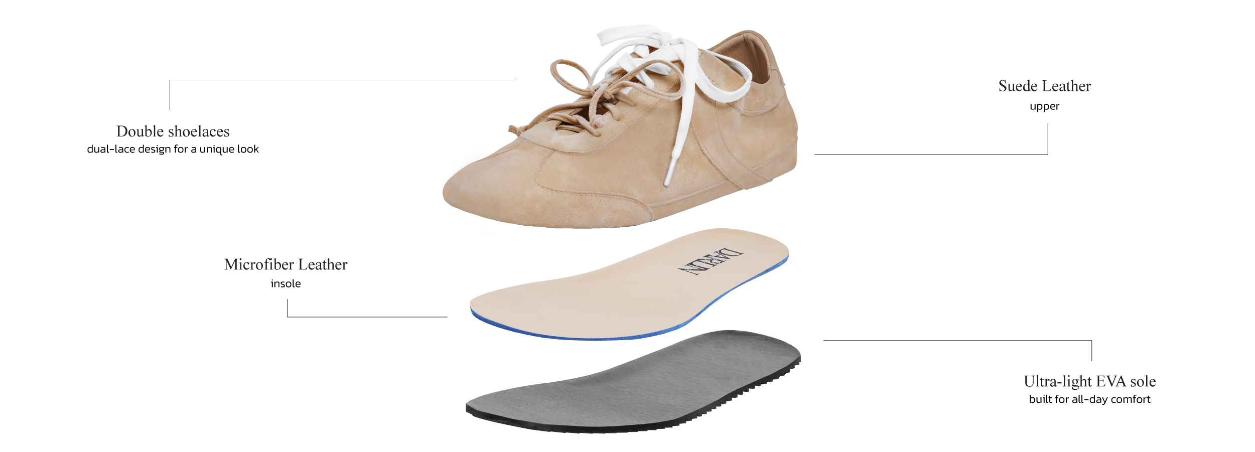 ดารินตั้งใจออกแบบพื้นรองเท้าให้ไม่หนาเกินไป เพื่อให้แนบไปกับรูปเท้าอย่างเป็นธรรมชาติ เมื่อสวมใส่แล้วจะรู้สึกใกล้เคียงกับการเดินเท้าเปล่าที่สุด